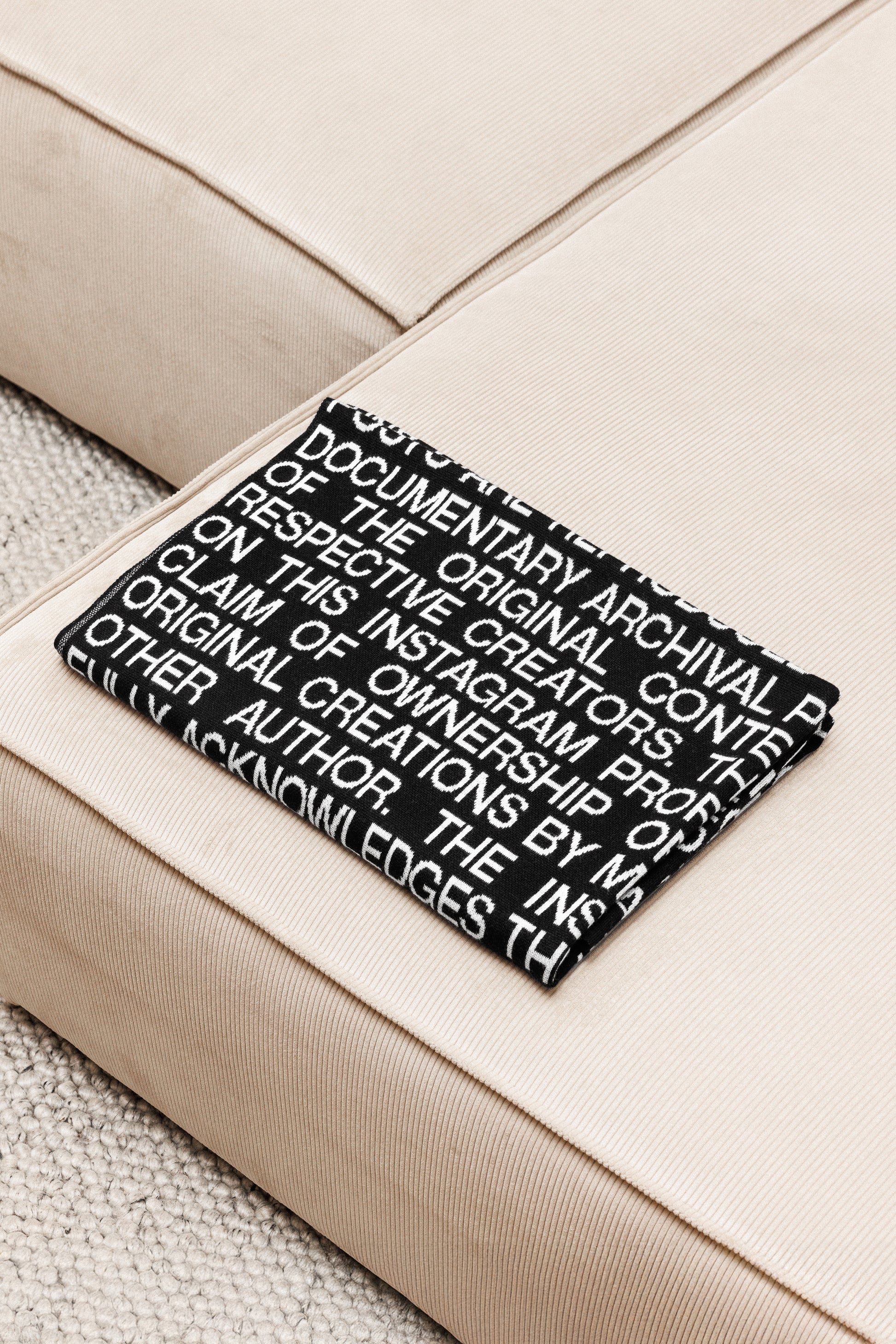 Comes with screen-printed packaging and features loops on the top and bottom for wall hanging. Produced in collaboration with Lanificio Leo (since 1873)